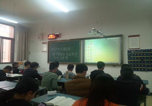党的十九大是在全面建成小康社会决胜阶段、中国特色社会主义进入新时代的关键时期召开的一次十分重要的大会。党的十九大把习近平新时代中国特色社会主义思想确立为中国共产党必须长期坚持的指导思想。各级领导干部要把它作为行动指南,带着信念学、带着感情学、带着使命学,深入理解习近平新时代中国特色社会主义思想的理论品格与精神特质。为了响应党的号召,本班级开展了 “学习贯彻党的十九大精神和习近平新时代中国特色社会主义思想”主题班会。