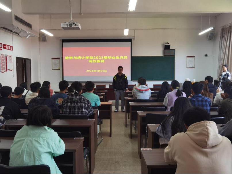 余纯为毕业生党员上“最后一堂党课”,就党员组织关系转接的事宜及注意事项进行了讲解,叮嘱毕业生党员按要求落实好党组织关系,结合自身的党务工作经验,就“如何做一名合格共产党员”作阐述,为毕业生党员在日后的学习与工作中身体力行地践行党的宗旨,履行党员义务提出了期望和要求。李书对毕业生党员进行了安全离校教育,通过讲事实、摆道理、举案例的方式,语重心长地向同学们强调了安全离校的重要性,并寄语毕业生党员要积极担当作为,做一名真正的共产党员,期待大家在未来建功立业,关心母校的发展,常回家看看。