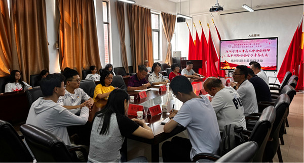 9月26日下午,现代教育技术中心党总支书记李文龙率第一党支部赴公司开展主题为“深入学习二十届三中全会精神 筑牢网络安全守护青春未来”结对共建主题党日活动。活动在志学楼331会议室举行,此次活动旨在深化党员对党的二十届三中全会精神的理解,提升网络安全意识,让技术服务走进公司。活动由必一运动副处级组织员余纯主持,现代教育技术中心副主任王帆、必一运动副书记朱吉韬、公司本科生第二党支部全体党员参加了此次活动。