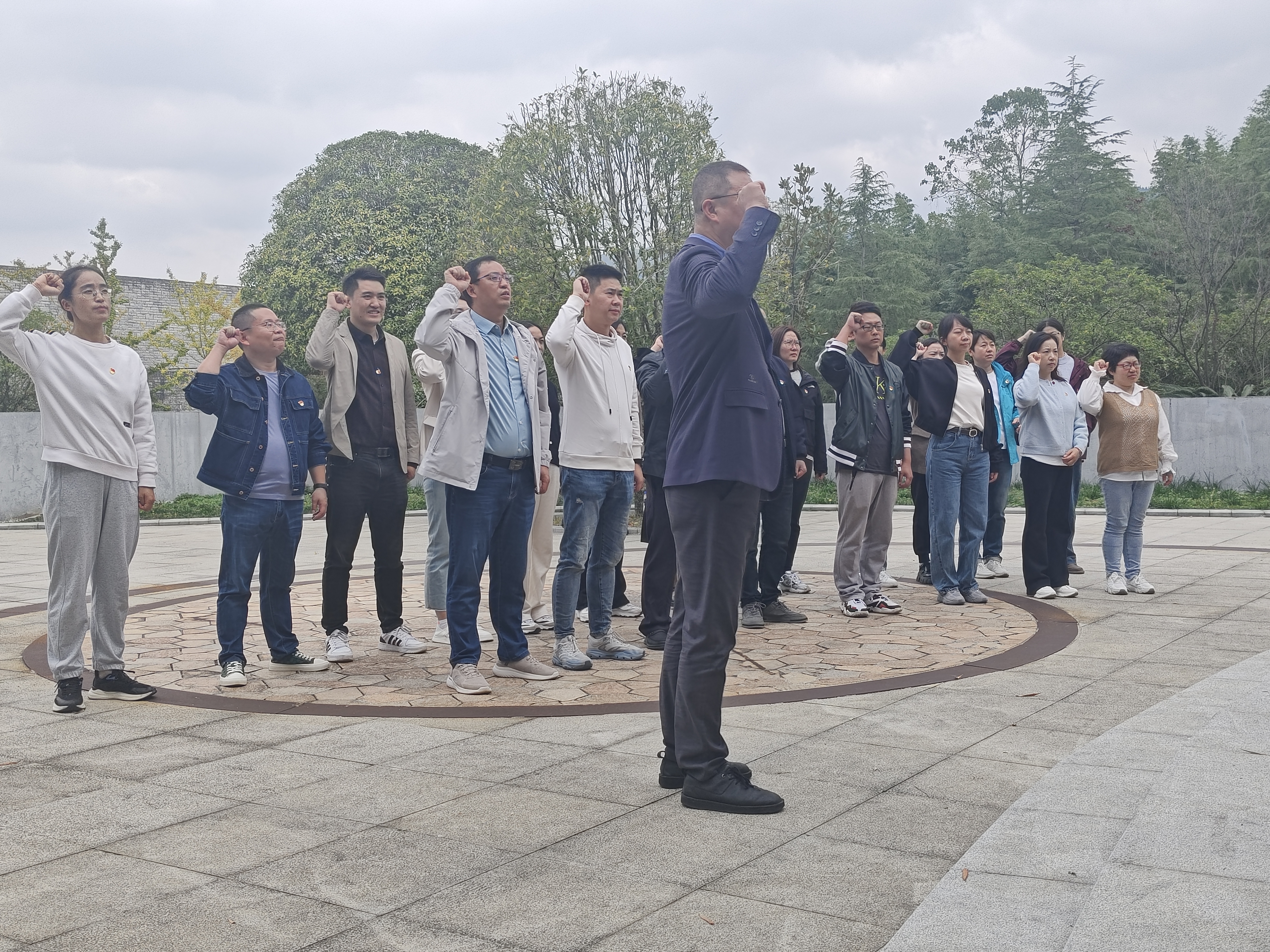 党委理论学习中心组集中研讨会召开前,公司党政领导班子、各科室负责人、各系部主任(副主任)、各支部书记,高层次人才、党外人士代表同志先到达息烽集中营革命历史纪念馆进行理想信念教育,并重温入党誓词。
