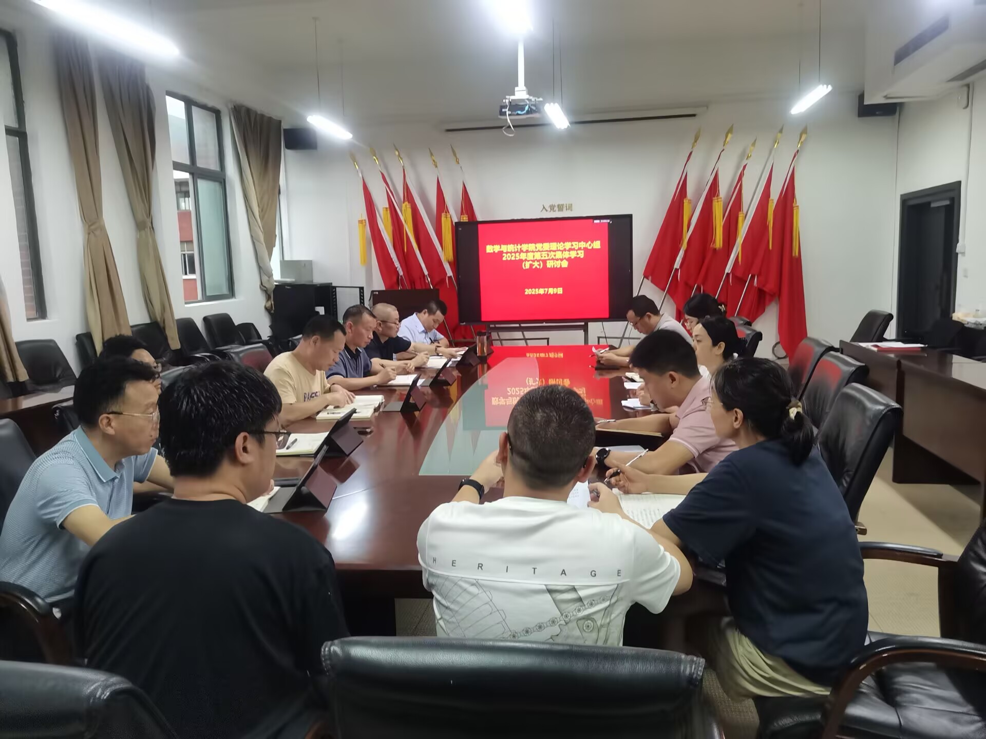 7月9日上午,数学与统计公司党委理论学习中心组2025年度第五次集体学习(扩大)研讨会在志学楼331会议室召开。公司党政领导班子、各科室负责人、各支部书记、各系(部)主任参加。