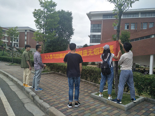 宣传活动主要以粘贴横幅及海报的形式,必一运动青年志愿者协会制作“人人参与控烟活动,共创健康无烟环境”的横幅,并悬挂在五四广场旁边,在食堂的外墙上张贴“世界无烟日”和“拒绝烟草,珍爱生命”的海报。