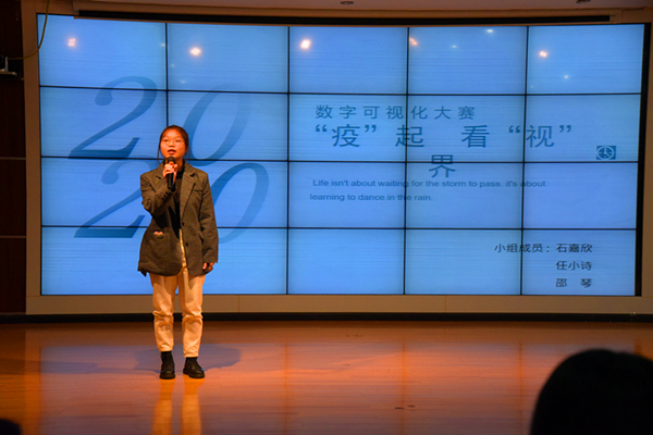 通过比赛的举办,使同学们对数字可视化有了充分的认识,加强对疫情数据的深入了解,用数字说话,实现可追溯、可预测、可视化。同时提高了同学们创新意识、动手能力以及专业知识的运用能力,活动取得了圆满成功。