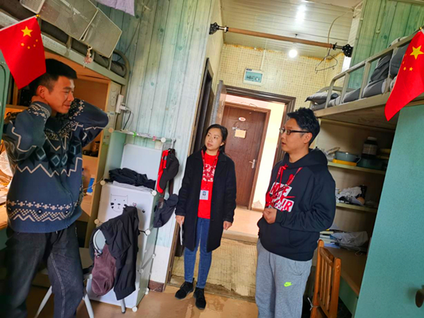 2021年3月24日,公司党委副书记李书和2018级辅导员蔡丽莉走访了18级员工寝室。