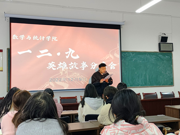 活动开始,参与活动的同学们依次上台,通过讲述一篇篇感人肺腑的故事,表达他们对党和国家的炽热情感。高晓峰同学分享的是抗日英雄郭秋明的故事,郭秋明同志坚定的革命意志和感人的爱党爱国精神深深地打动了同学们。陈炼同学带来的杨靖宇带领抗联第一路军进行艰苦卓绝的战斗故事。盛成艳同学分享的是女英雄赵一曼的故事。故事分享结束后,贺婧老师强调,希望同学们勿忘国耻,缅怀先烈,珍惜当下,好好学习。