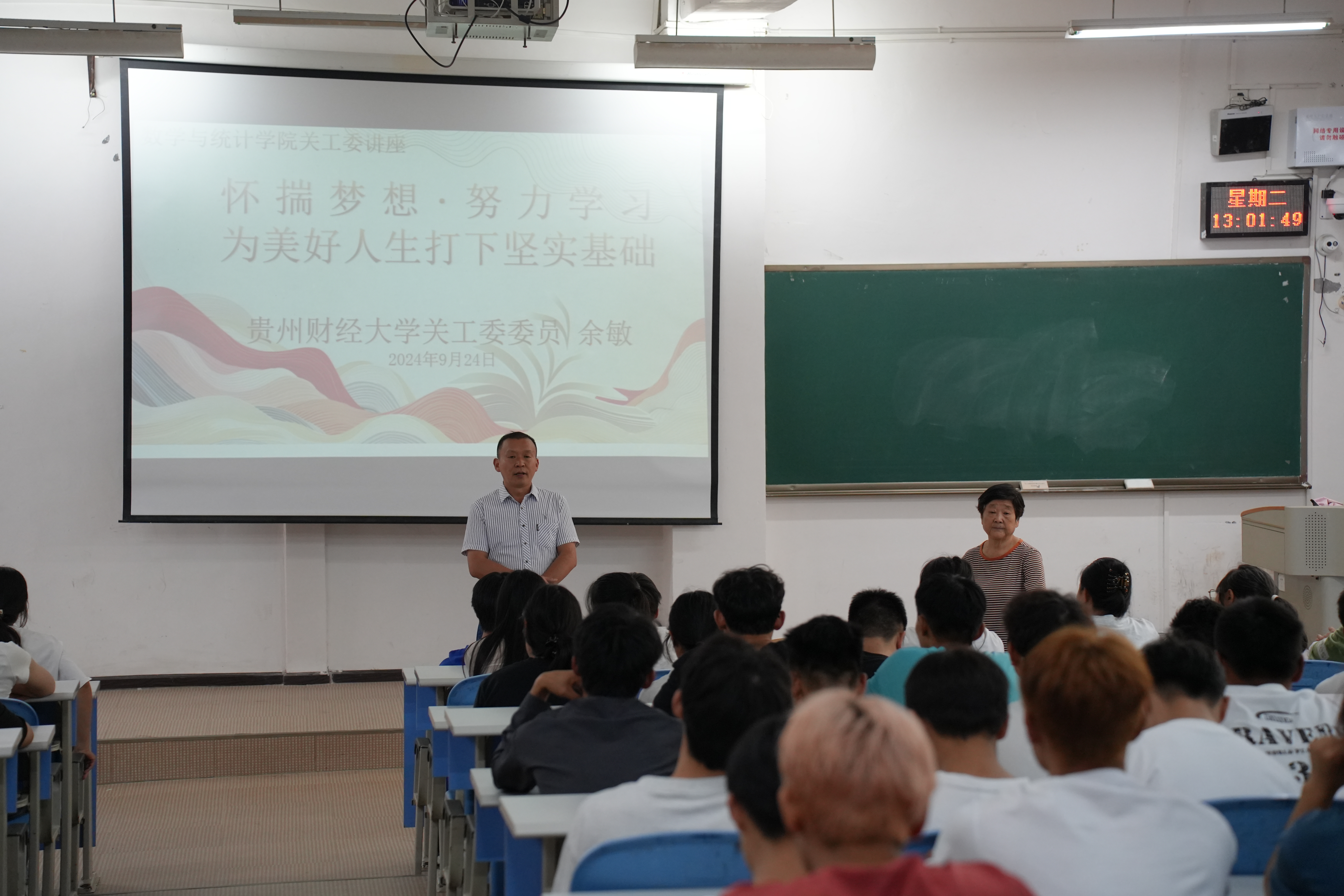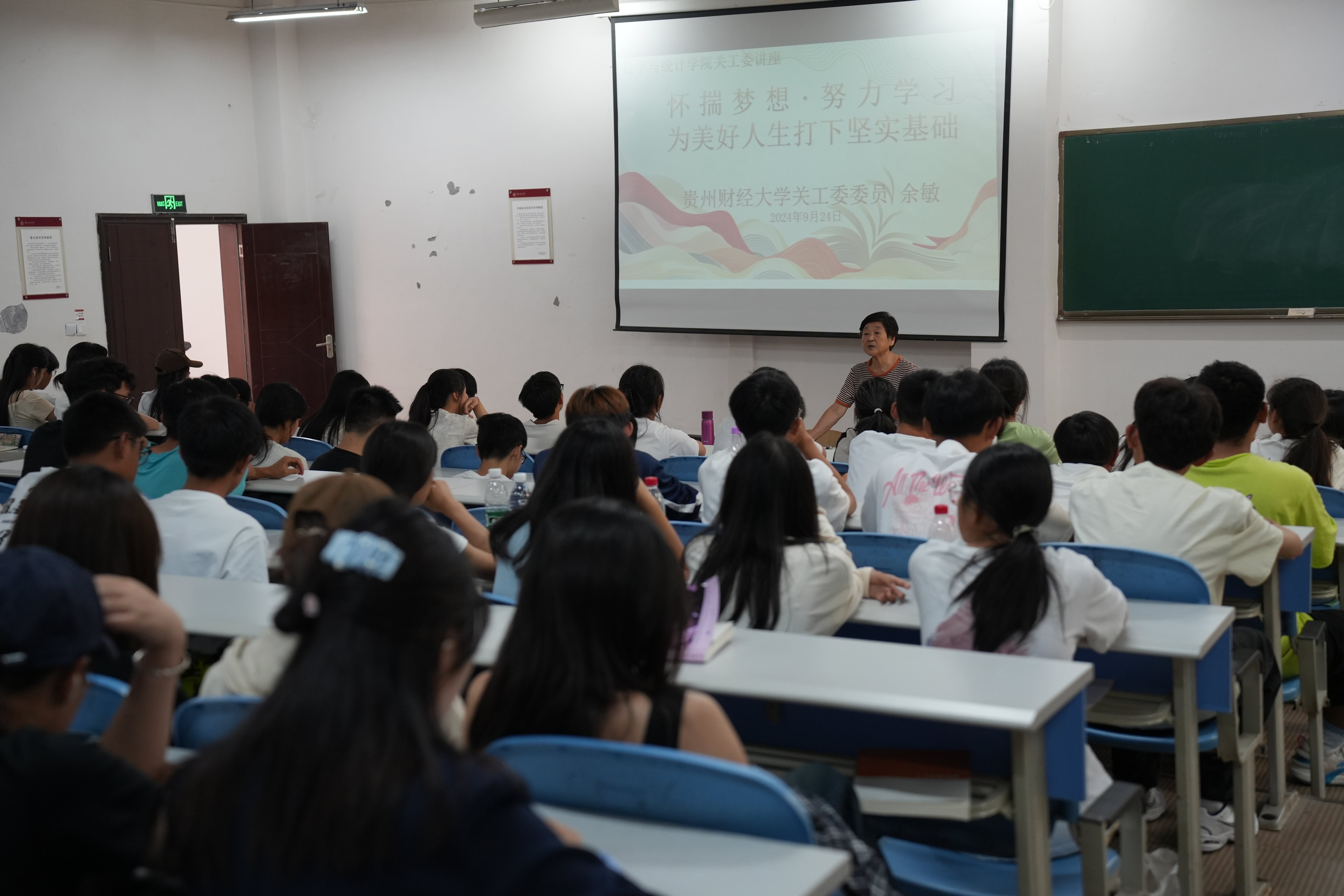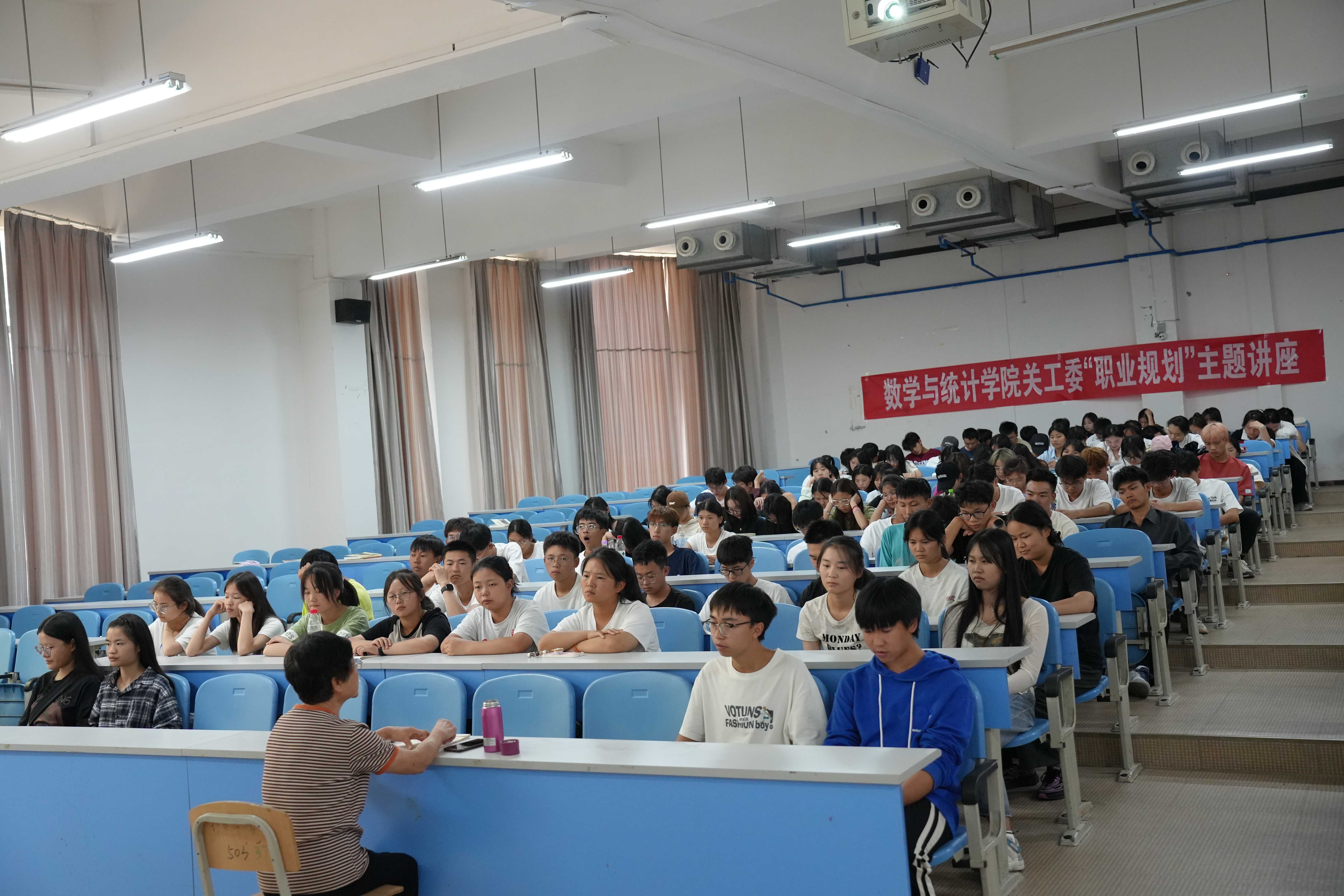 余敏老师以其丰富的经验和专业的指导,以“怀揣梦想,努力学习,为美好的人生打下坚实的基础”为题做讲座。她用生动详实的案例和深入浅出的讲解,引导同学们认识自我、了解职业世界。她介绍了相关专业的课程设置、就业前景和发展方向,帮助同学们了解自己所学专业的特点和优势,激发他们的学习兴趣和动力,促使他们更好地规划未来职业道路。