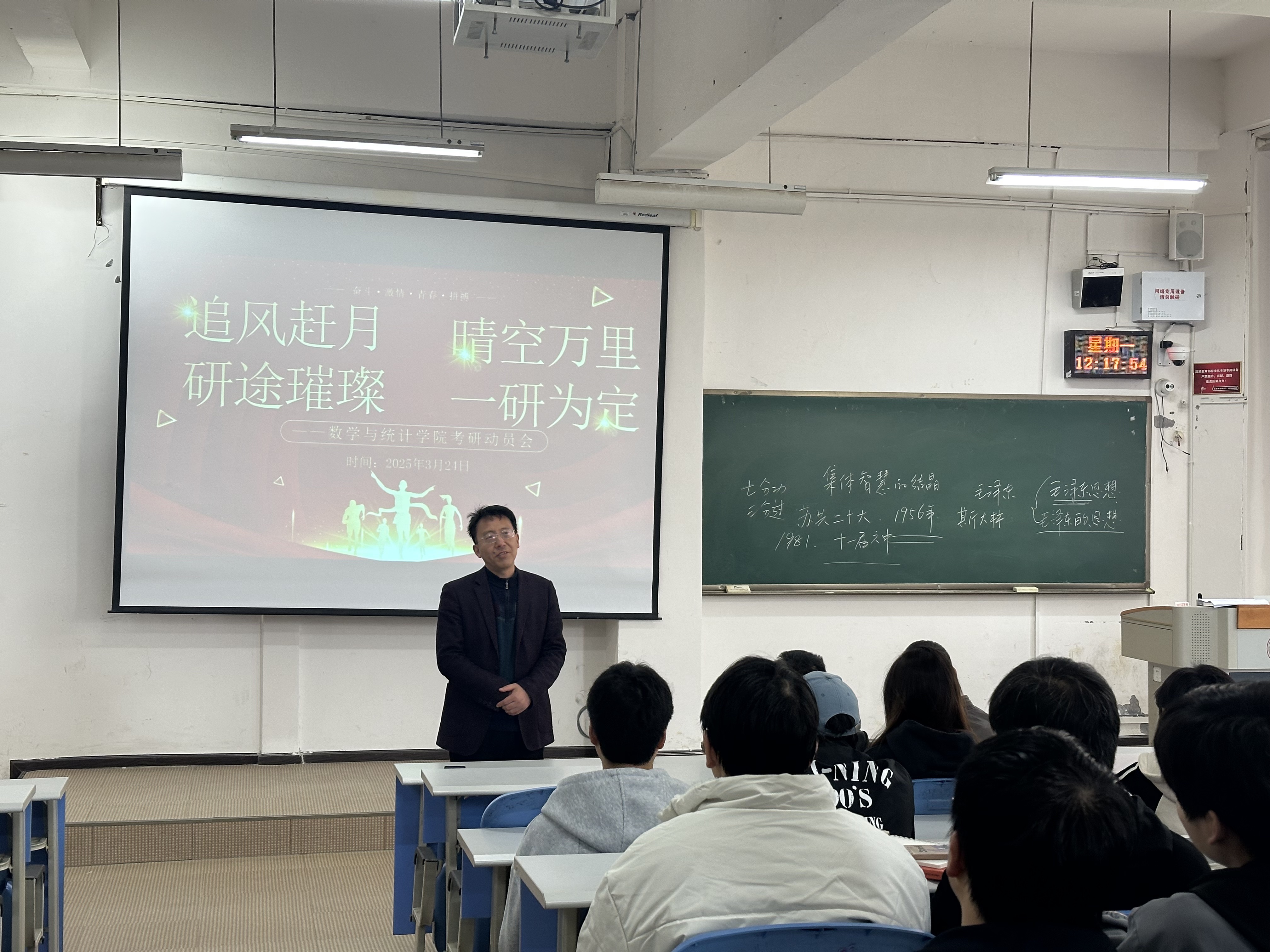 会上,张千宏作动员讲话。对考研同学提出希望,希望大家要有明确的目标,合理定位、积极备考、勇敢追梦。