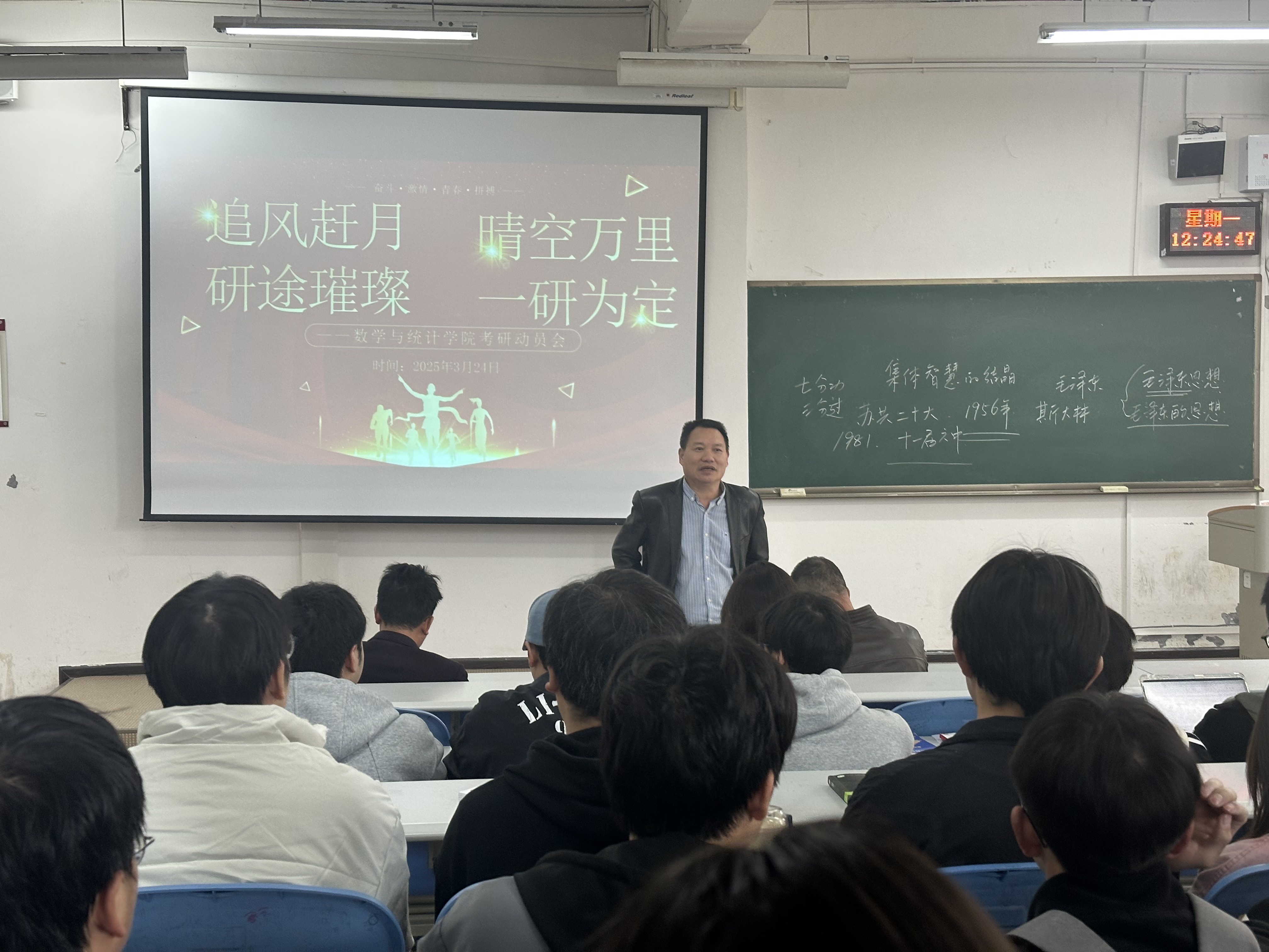 为激发员工的考研热情,把握考研形势,明确考研目标,3月24日,必一运动在进学楼101举行了考研动员大会。公司党委书记虞帆、经理焦建军、副经理张千宏,辅导员蔡丽莉以及全体2022级、2023级员工参加。