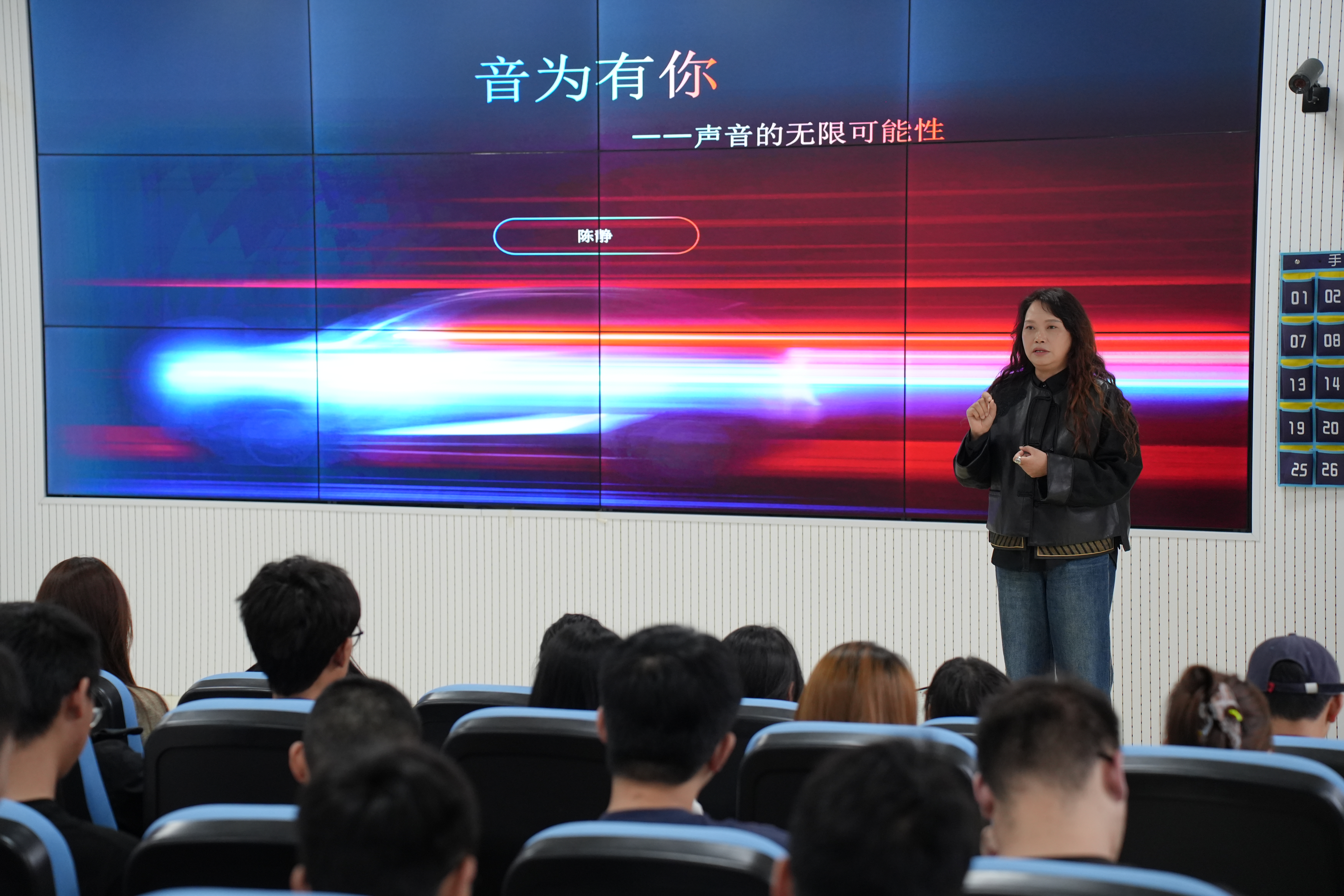 讲座中,陈静以“音为有你——声音的无限可能性”为题,引领同学们深入探索声音艺术的奇妙世界。她从声音的本质出发,运用生动形象的比喻和丰富详实的案例,向大家生动展示了声音在不同场景、不同情感状态下的多样变化,指出声音不仅是传递信息的重要载体,更是一种极具感染力的艺术形式。讲座还不时穿插经典剧目片断表演,生动展现文学作品的舞台张力和语言魅力,体现了语速和停顿对营造语言氛围的重要作用。
