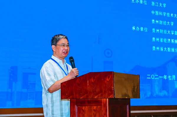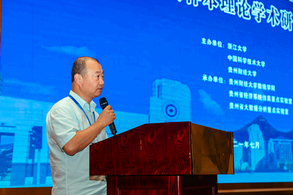 中国科学技术大学缪柏其教授致辞。他衷心的希望通过本次研讨会,与会学者能达到学术上的深度交流,以此促进概率论与统计学学科的不断发展,研究成果的不断出新,数据科学人才培养能力的不断提升,实现数据科学全面服务经济社会高质量发展的长期目的。最后,他预祝研讨会取得圆满成功。
