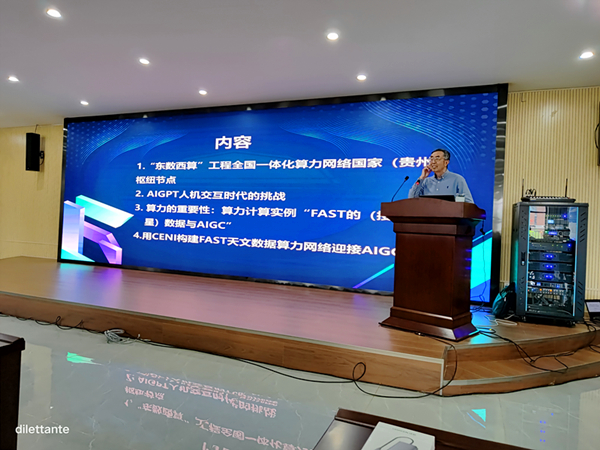 谢晓尧以“人工智能与大数据技术”为主题,介绍了“东数西算”工程全国一体化算力网络贵州枢纽节点的建设情况;分析了人工智能时代各行各业面临的机遇和挑战;最后,对FAST的(脉冲星搜索)数据处理基本流程做了介绍,并对当前FAST数据处理过程中面临的算力问题做了详细分析,同时指出利用CENI构建FAST天文数据算力网络。