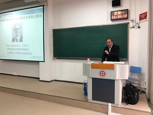 葛翔宇教授介绍了赌徒的困惑与凯利准则、马科维茨的均值—方差最优投资组合模型、布朗运动、Black-Scholes公式、黎曼猜想和Malliavian随机分析与Hӧrmander定理,这些介绍加深了师生对随机分析学及其应用的认识和理解。