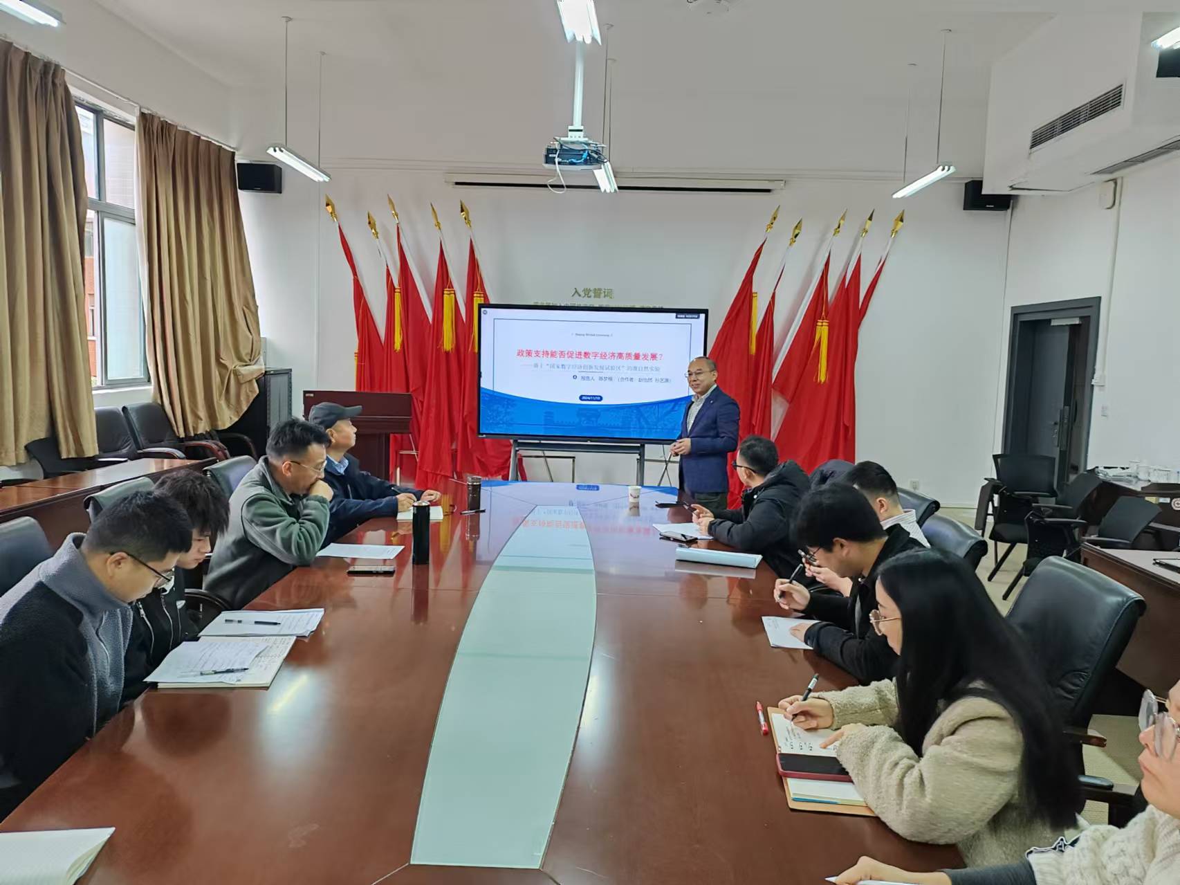 11月19日上午,应必一运动邀请北京师范大学陈梦根教授为公司师生做题为“政策支持能否促进数字经济高质量发展?”的学术讲座。讲座由公司副经理张千宏教授主持,公司教师和研究生60余人参加此次讲座。