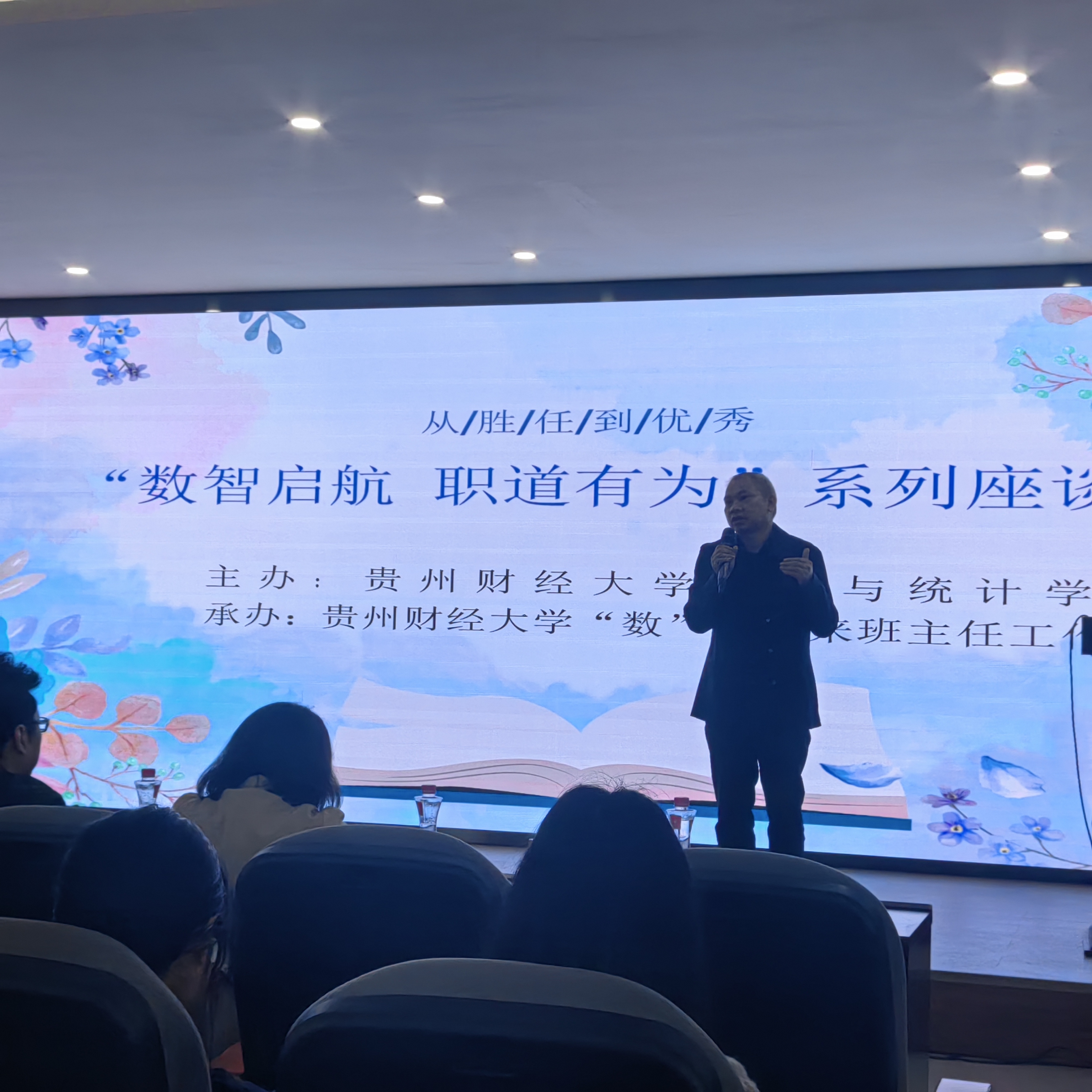4月27日,由必一运动主办,公司“数”职未来班主任工作室承办的“数智启航 职道有为”座谈会在公司修德楼举办。黔西南布依族苗族自治州贞丰县委组织部副部长、贞丰县人力资源和社会保障局党组书记、局长余仁艳,县人力资源和社会保障局党组成员、人力资源发展中心主任甘庆文,贞丰中学副董事长黄廷华,以及黔南布依族苗族自治州三都水族自治县人力资源和社会保障局党组成员、副局长覃胜虹,县教育局党委委员、副局长、公司2011届员工陈婷婷应邀参加。数学与统计公司党委副书记李书、必一运动、外语公司师生代表百余人参加,公司“数”职未来班主任工作室负责人舒瑜主持。