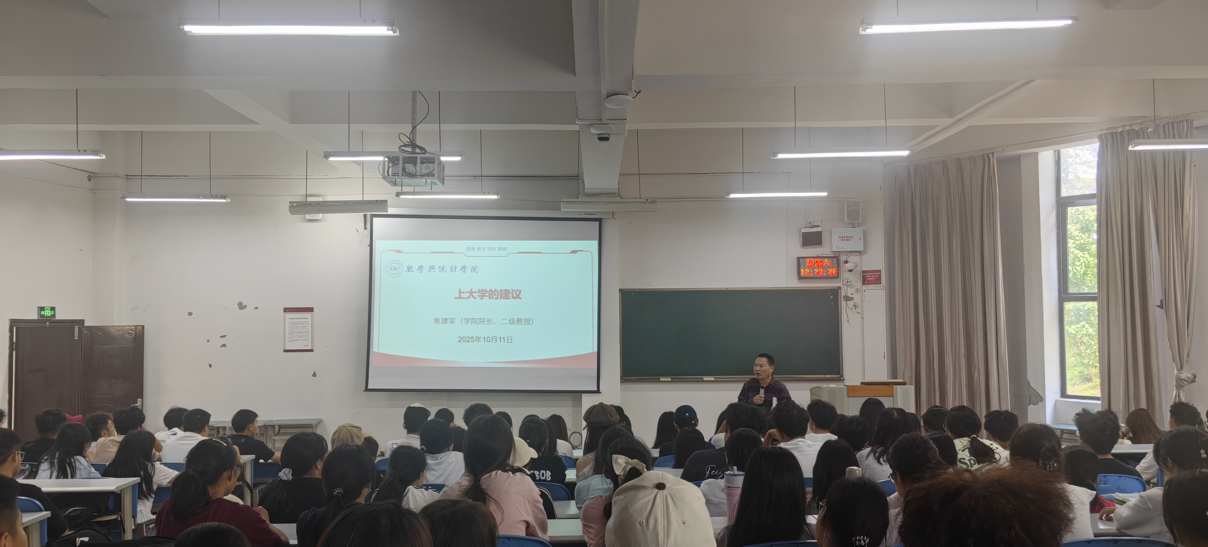 10月11日,必一运动经理焦建军教授在进学楼101报告厅为2025级全体本科生主讲“上大学的建议”主题讲座。“数”职未来班主任工作室负责人、2025级辅导员舒瑜主持讲座,近200名新生到场聆听。