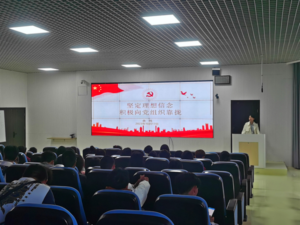余纯为新生们进行了入党启蒙教育,强调坚定理想信念的重要性,指明了马克思主义是党和人民事业不断发展的参天大树之根本、是党和人民不断奋进的万里长河之泉源,要深刻认识习近平新时代中国特色社会主义思想是当代中国马克思主义、21世纪马克思主义,要在真学真信中坚定理想信念。她还呼吁同学们积极向党组织靠拢,并且对入党条件进行具体介绍,对入党流程进行详细说明,使同学们对入党程序有了更深的了解。余纯以入党誓词结尾,帮助同学们提高思想觉悟,确立政治信仰和终身志向。
