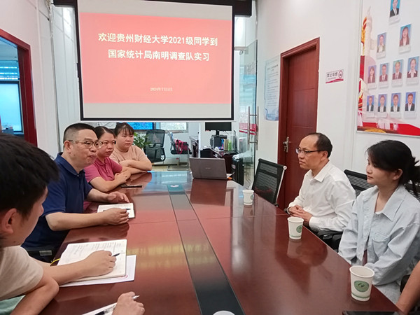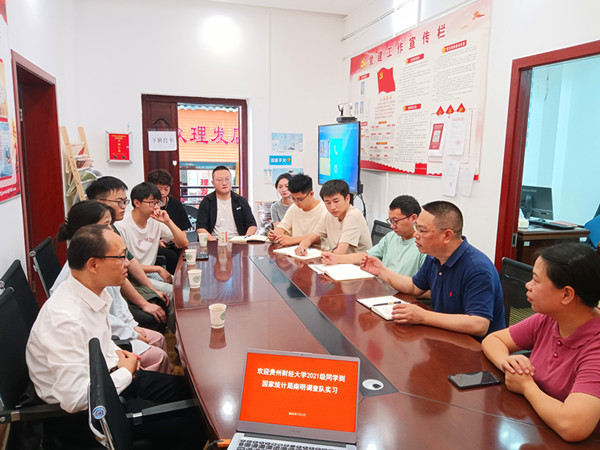 7月1日上午,2021级的3名同学在刘轶中老师的带领下到国家统计局南明调查队开展专业实习。南明调查队队长何宇、纪检员刘珂君、办公室负责人杨燕玲等调查队全体成员热情接待了我们并组织座谈会。