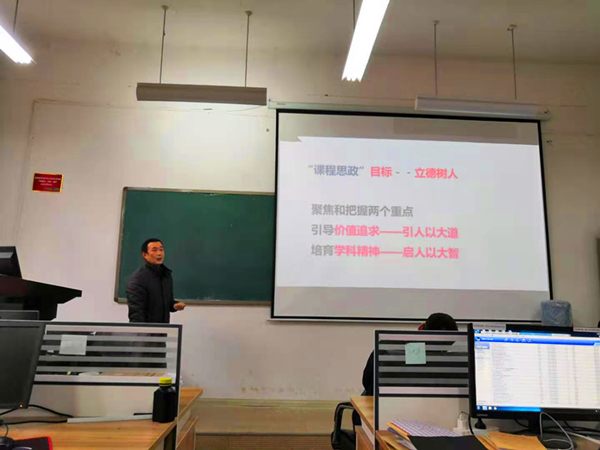 会上,刘自鑫教授 以“《概率论与数理统计》课程思政的一些思考与探索”为主题作报告。首先,他介绍“课程思政”是把 “立德树人”作为教育的根本任务的一种综合教育理念,其内涵是通过全员、全过程和全方位育人的形式,将各类课程与思想政治理论课同向同行,形成协同效应,达到“润物细无声”的育人效果。其次,通过对《概率论与数理统计》思政元素的深入挖掘,介绍《概率论与数理统计》课程思政的具体实施途径。