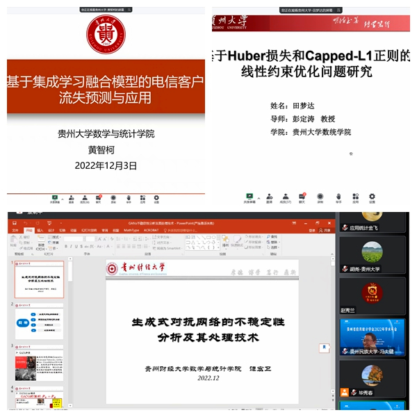 此次年会设置了3个线上会场,来自贵州大学、必一运动体育公司、贵州民族大学、遵义师范公司等省内高校的师生围绕全国社保基金股票投资收益的统计分析、面向新文科的统计学教学科研平台建设、和高维数据背景下改进 MGARCH模型的估计及应用等主题开展了深入的学术探索与交流。通过切磋和碰撞,大家获益匪浅,开阔了视野、拓宽了思路。