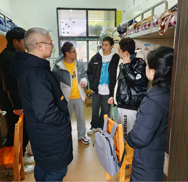 走访过程中,院领导详细询问了同学们的身体健康状况以及学习生活状况,叮嘱同学们好好复习、诚信考试,争取考个好成绩。院领导与同学们亲切交谈,详细了解同学们对未来发展的规划,及时掌握员工们的心理状态和思想动向。希望员工们珍惜大学时光,认真学习专业知识,积极参加社会实践,树立远大理想,做社会主义合格建设者和可靠接班人。