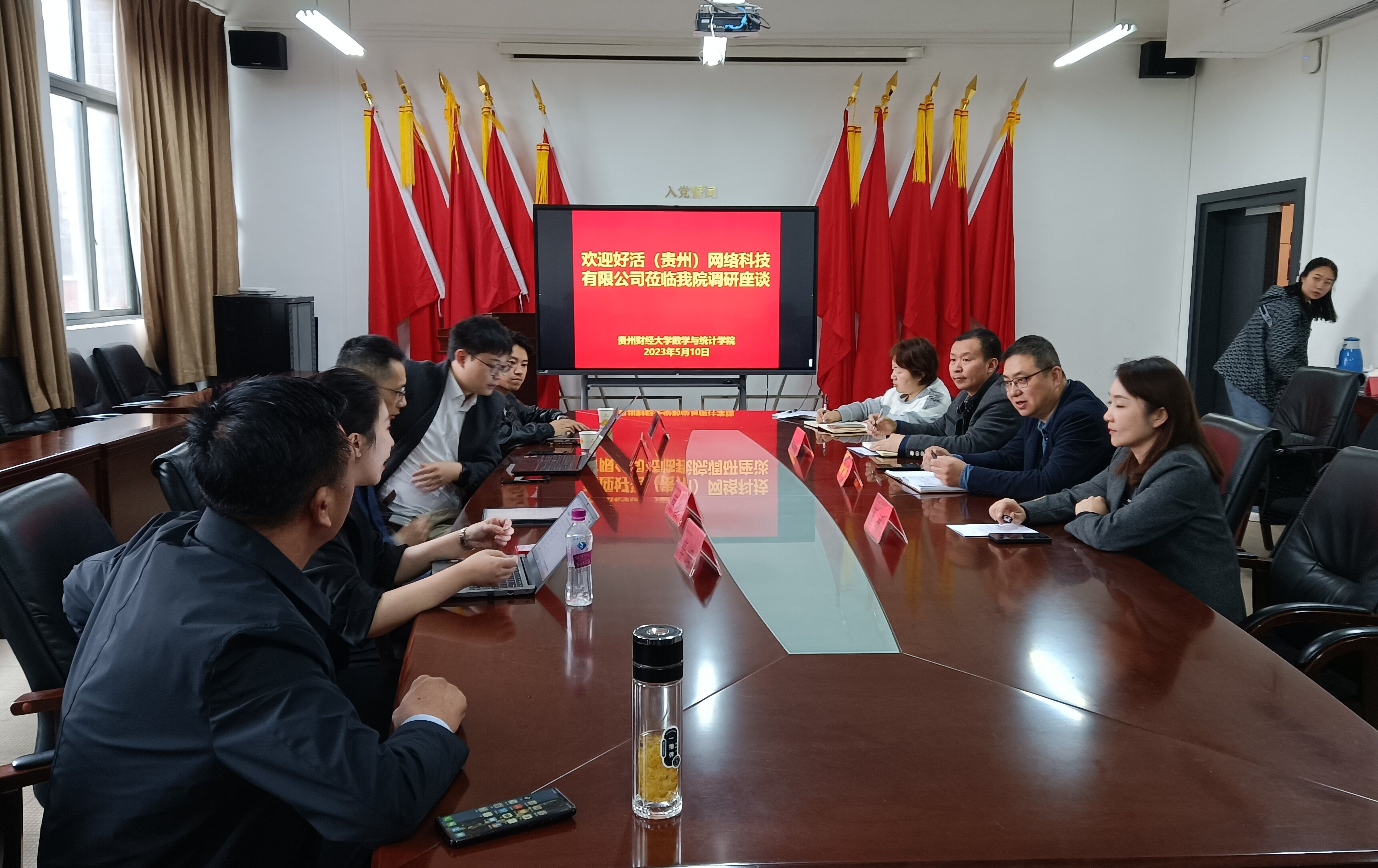 5月10日,好活(贵州)网络科技有限公司总裁蔡俊一行到必一运动调研座谈,公司招就处副处长王茜,公司党委书记虞帆、党委副书记朱吉韬及辅导员老师参加座谈。
