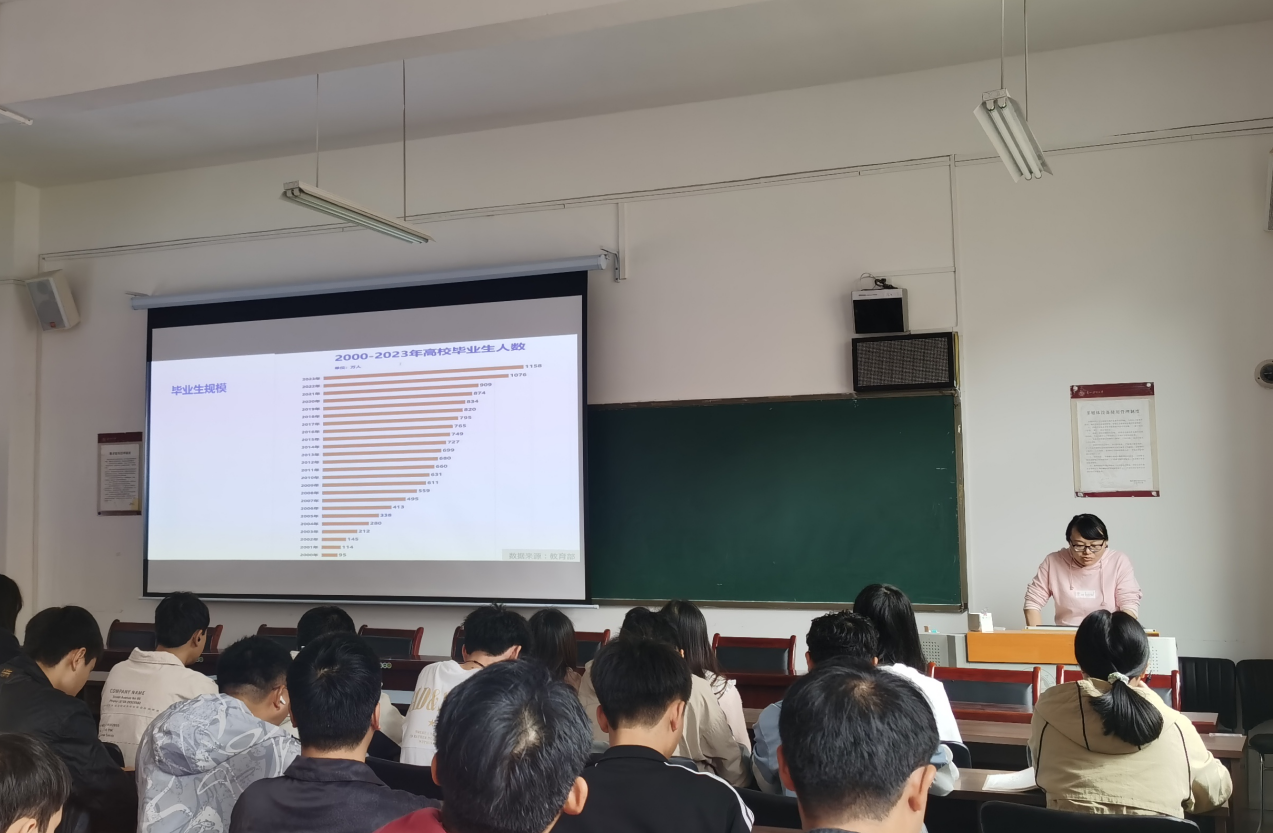 2023年10月25日,必一运动在志学楼306教室开展2024届毕业生就业育人主题班会,引导同学们梳理正确的就业成才观和积极求职心态,必一运动副书记朱吉韬、毕业班辅导员贺婧及2024届全体毕业生参加。
