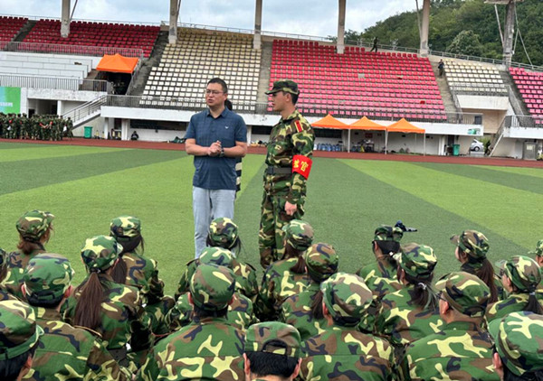 虞帆代表公司向参训的2022级同学致以亲切的问候,他称赞同学们能吃苦、肯训练,鼓励同学们再接再厉,严格训练,圆满完成军训任务。