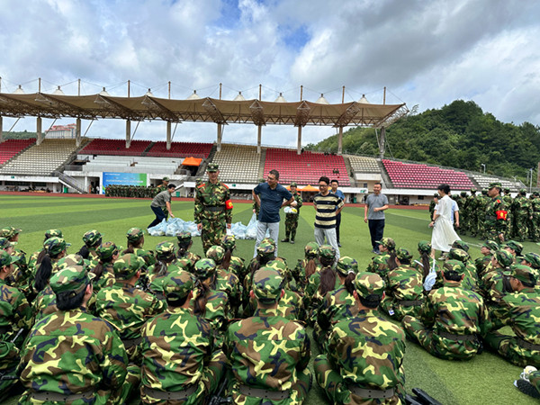 7月4日上午,公司党委书记虞帆、副书记朱吉韬、李书、副处级专职组织员余纯、副经理张千宏及辅导员蔡丽莉到公司体育场慰问2022级军训学子。