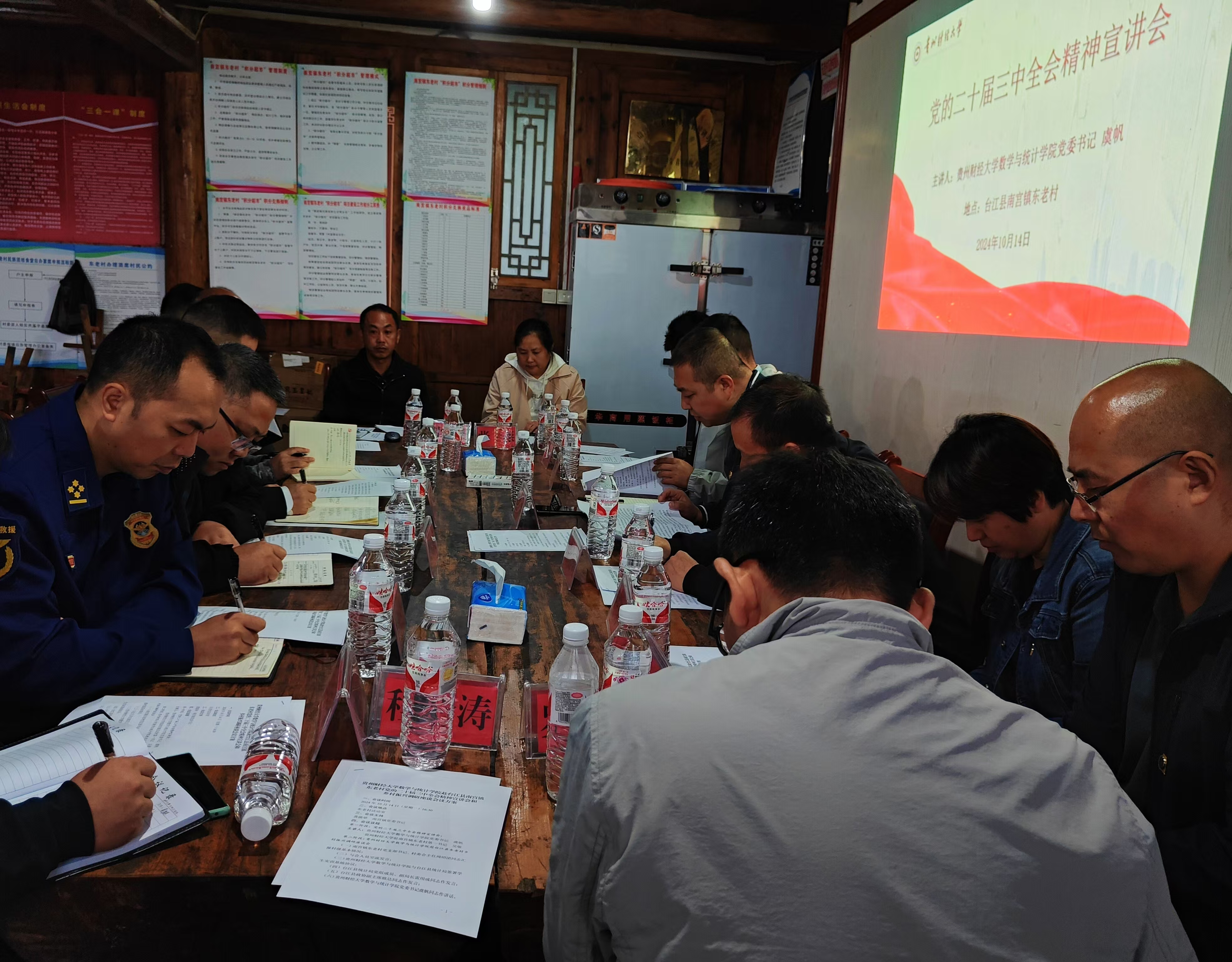 为了深入贯彻落实党的二十届三中全会精神和省委十三届五次全会精神,发挥公司专业学科优势助力乡村振兴、服务地方经济社会发展,10月14日至15日,数学与统计公司党委书记虞帆、继续教育公司教师代表一行前往台江县南宫镇东老村、凯里市统计局,开展党的二十届三中全会精神宣讲暨乡村振兴调研活动。