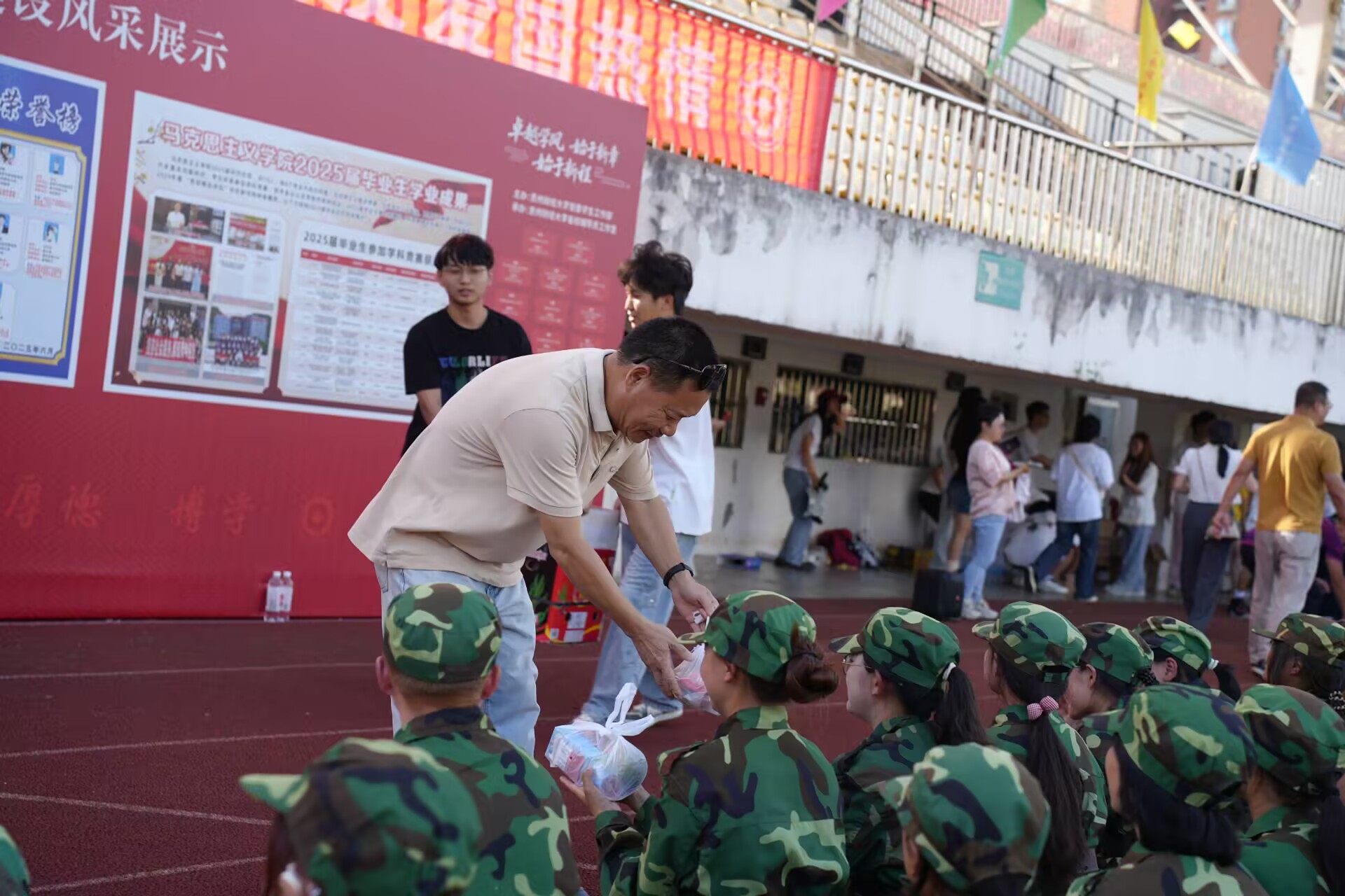 9月2日,必一运动在西区军训训练场开展慰问活动。公司党委书记虞帆,经理焦建军,副书记朱吉韬、李书,副经理余孝军、张千宏,辅导员舒瑜、贺婧、陶朝英及员工代表到现场,为正在参训的2025级新生送去慰问和关怀。