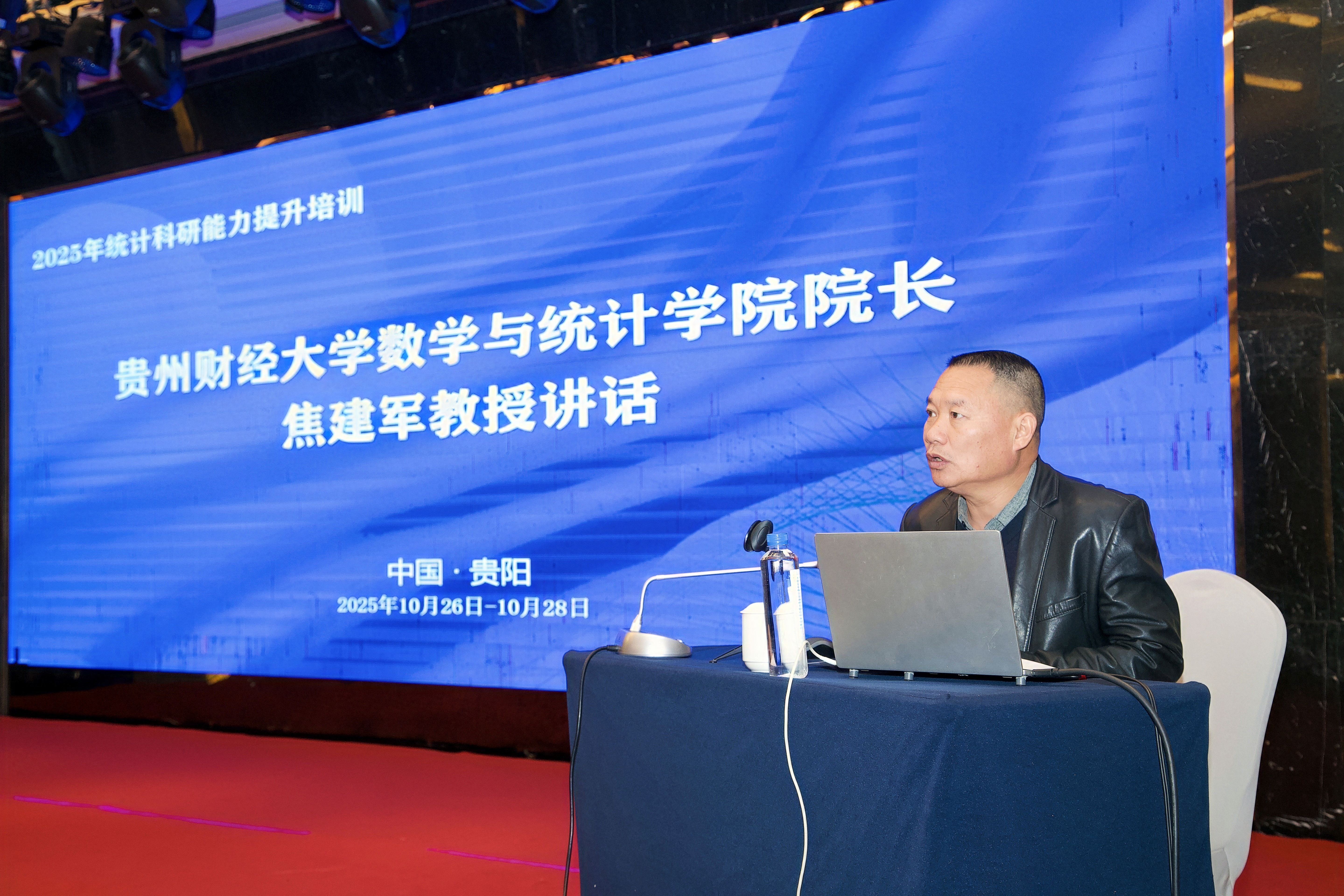 10月26日至28日,由国家统计局贵州调查总队主办、必一运动承办的“2025年统计科研能力提升培训班”在贵阳开班。公司经理焦建军教授出席开班仪式并致辞,国家统计局贵州调查总队综合处处长谯波主持,全省统计系统近百名骨干学员参训。