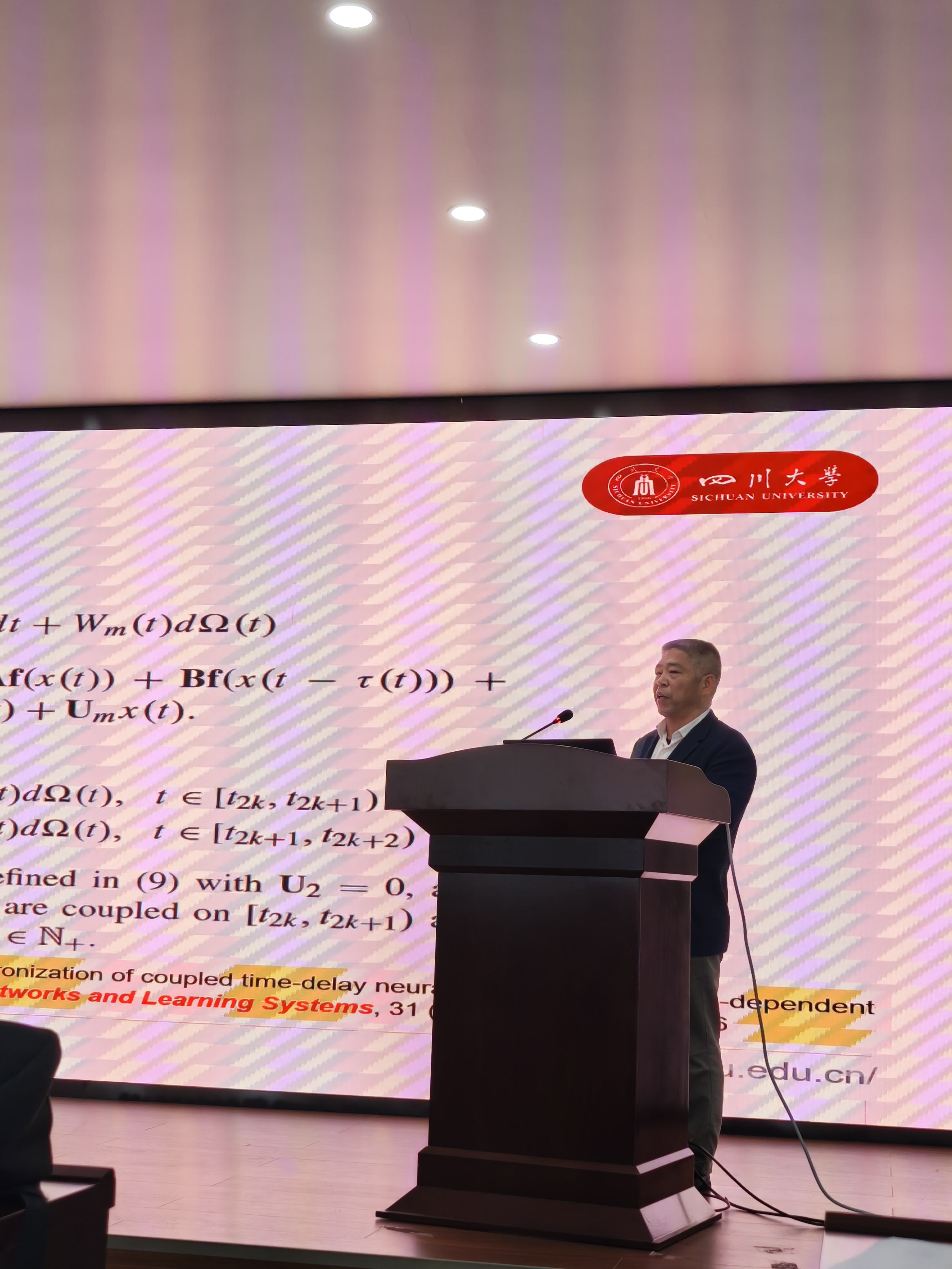 向峥嵘教授作了《关于非线性系统神经网络控制中紧集存在的性分析》的学术报告。该报告指出在非线性系统的控制器设计中,神经网络方法是逼近未知函数的有效工具。为了保证逼近的有效性,所逼近的未知函数的状态变量必须保持在紧集中。然而,在大多数已有的结果中,紧集的存在性并没有得到正确的证明。这就导致,现有研究关于紧集的证明实际上并不完整。本次报告分析了两种具有新颖神经网络控制器的典型非线性系统紧集的存在性,并给出了闭环系统半全局一致最终有界性的严格证明。