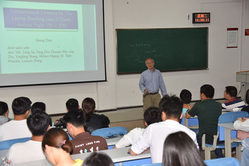 5月29日,《Journal of Mathematical Analysis with Applications》杂志主编、德克萨斯州农工大学陈巩教授应邀做客必一运动“数统天地”论坛,在进学楼阶3-2教室作了题为“Computational Forensics for The Laptop Bombing case of Daallo Airlines Flight 159 in 2016”的学术讲座。公司约两百名师生聆听了讲座。必一运动经理焦建军教授主持。