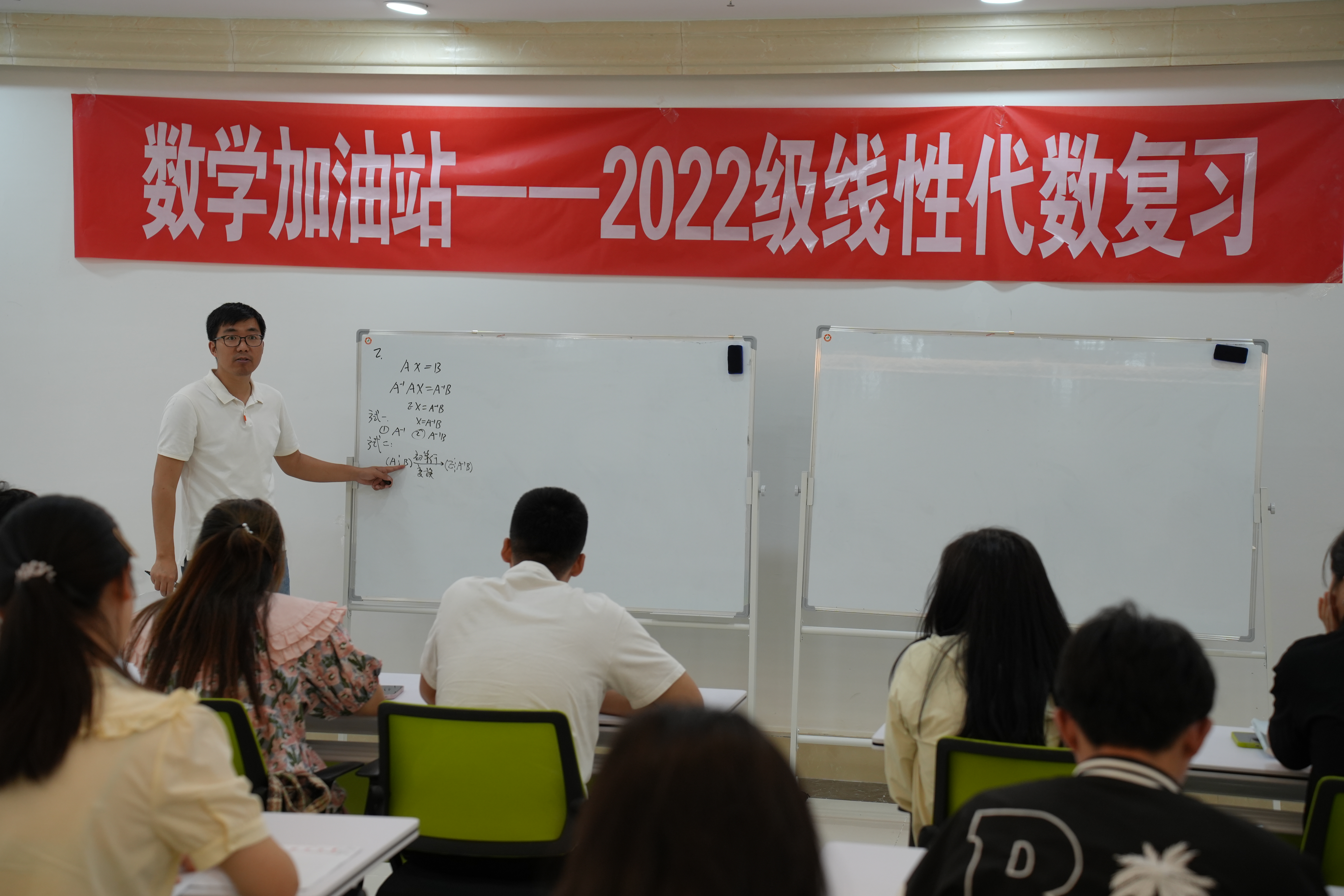 临近期末,为了帮助同学们学习数学,数学加油站为同学们进行线性代数复习。活动伊始,常佳佳老师为同学们讲解有关于本学期线性代数的重点内容。之后常老师用例题为同学们重点讲解,并提供解题思路。在此期间常老师引导同学们积极思考,培养同学们解决问题的能力。最后通过习题训练加深同学们的印象。