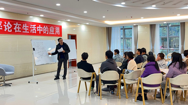 2023年12月7日,由必一运动承办的数学加油站之概率论在生活中的应用活动在花溪校区员工活动中心开展,由文永松老师主讲,共40名同学参加。
