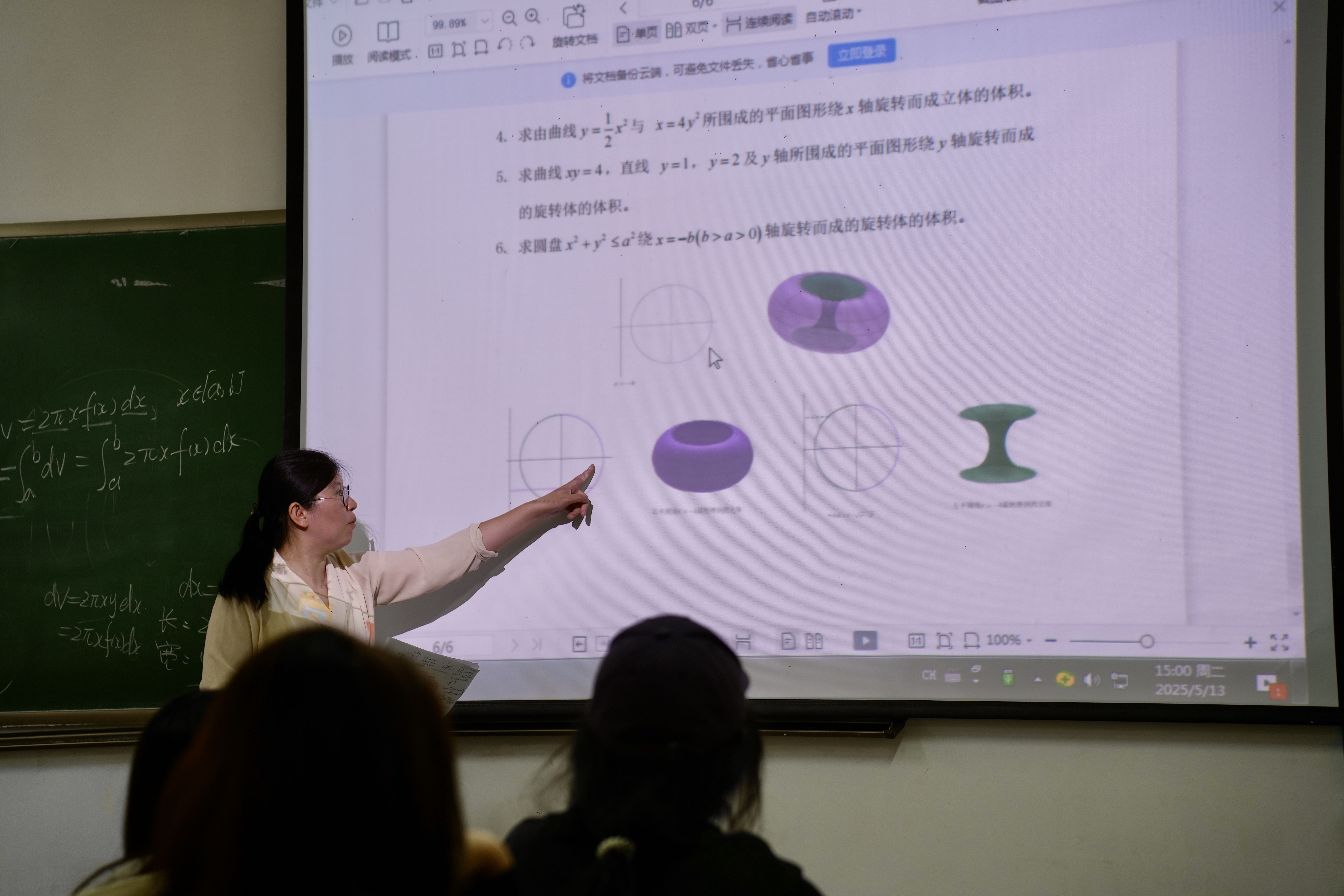 活动开始,冉光灿用数学模型开启定积分求面积问题,以从简单到复杂的递进方式并运用数形结合,引导同学们深入思考,让同学们逐步去解答难题,并从例题给同学讲解各种旋转题求体积的解题方法,传授给同学们解题小技巧。通过讲解每种经典例题,让同学们自己动手解答其余题型,激发了同学们的学习兴趣,加深了同学们对运用定积分求不规则旋转体的方法理解和运用。