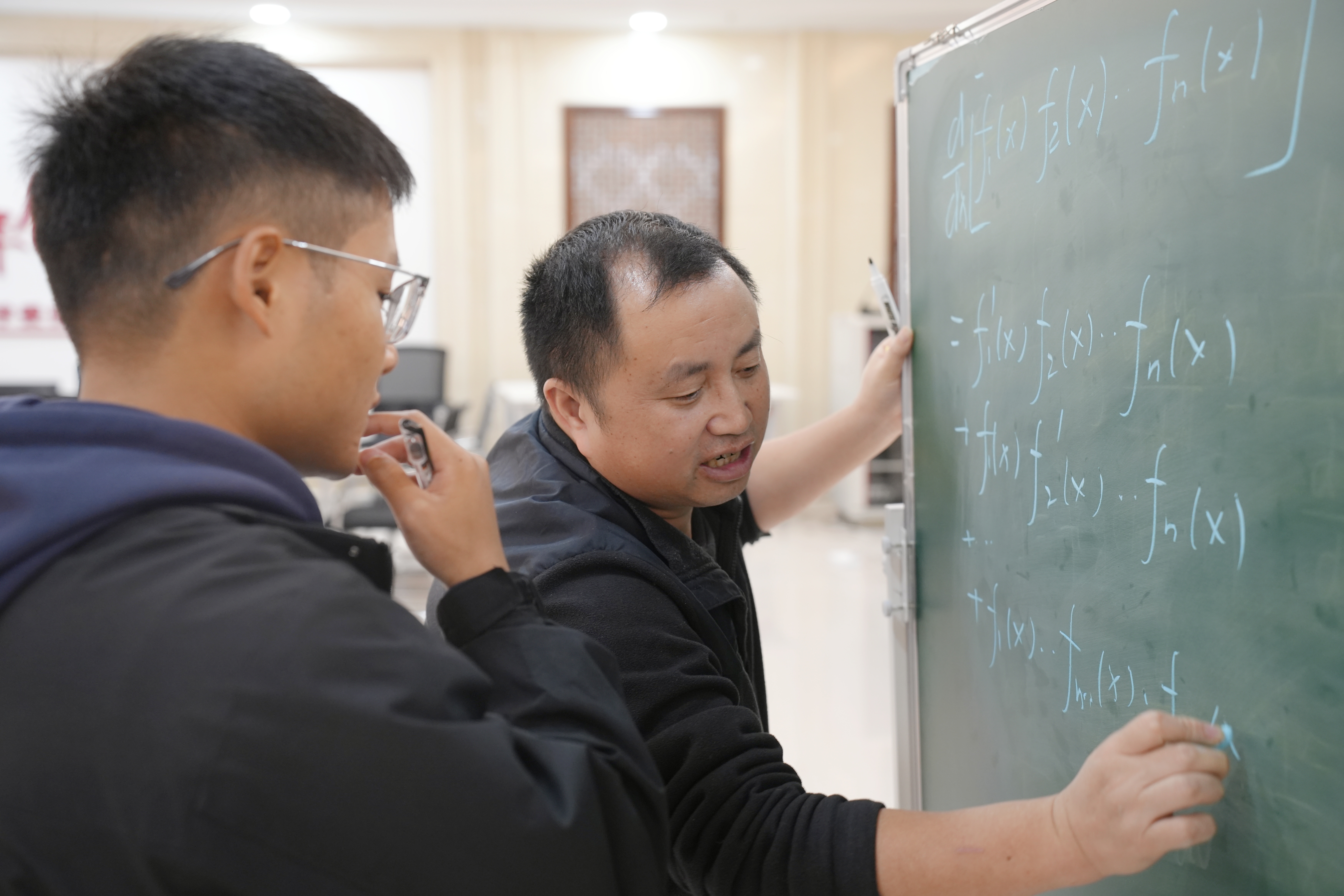 活动中,龙凤山首先通过概念溯源、公式复习,回顾导数的几何意义、基本求导公式等,突出导数运算的核心是规则应用的逻辑。随后,以例题为主开展运算法则探究,聚焦四则运算法则、复合函数、隐函数以及参数方程求导法则的推导与应用。最后,为同学们答疑解惑并互动交流。
